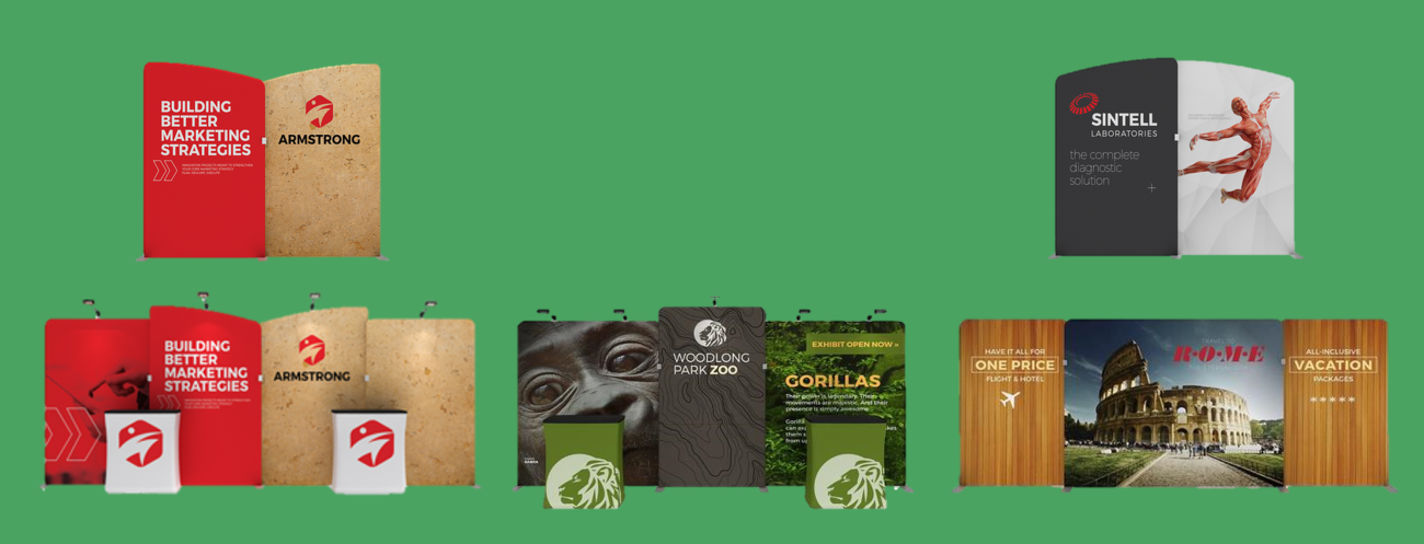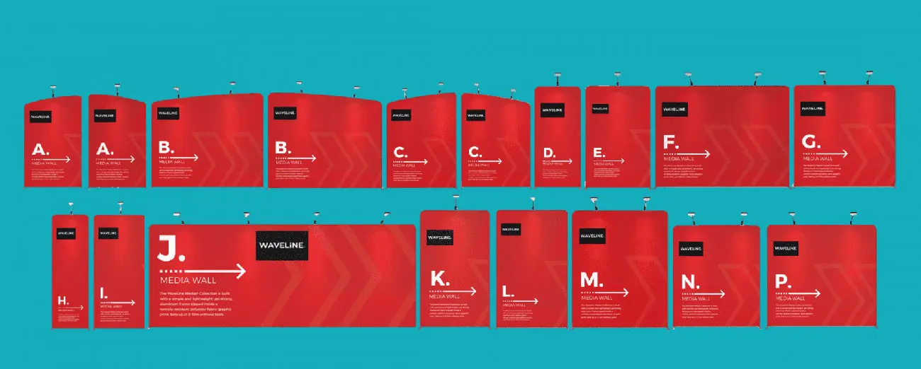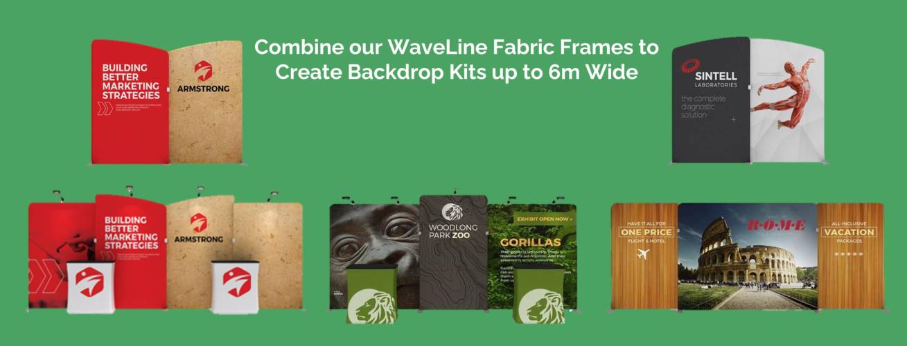 Our range is dominated by the impressive WaveLine Tension-Fabric Backdrops which give you an amazing 18 different size options to choose from and can be combined together to form backdrops for larger booths. Straight and Curved options are available and when you add in more variations such as the MonoLith and Merchandiser and we’re confident that you’ll be able to find the exact fabric backdrop that you’re looking for.