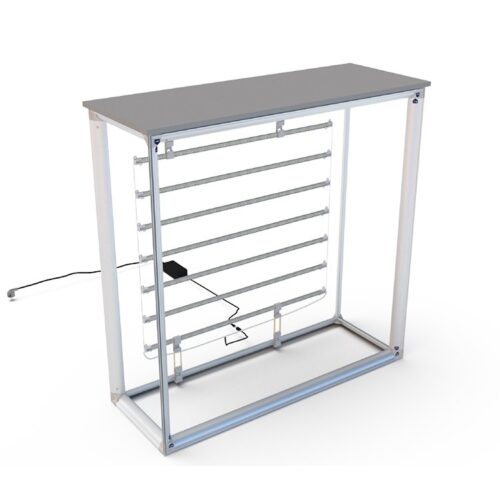 Despite its strong presence, the Enliten Backlit Counter remains highly portable and tool-free. It breaks down quickly into a convenient carry case, making it ideal for trade shows, exhibitions, retail activations, product demos, reception points and event check-in counters.