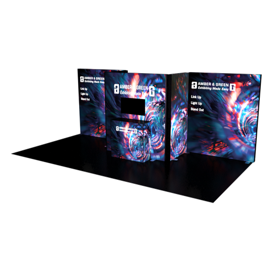 Create visual depth and structure with the Excite Focus Lightbox Booth, designed specifically for a 6m x 3m exhibition space. This standout configuration features a central lightbox backwall measuring 1.5m wide x 2.25m high, flanked on both sides by 850mm wide x 2.25m high lightboxes positioned at 90 degrees to add dimension and focus.