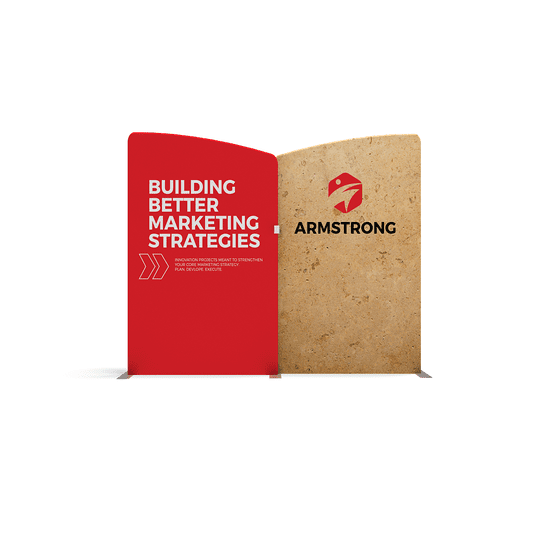 Single-sided pillow case-style, wrinkle-resistant polyester fabric graphic panels slide over the frames and zip shut at the bottom, creating the tension in the fabric that removes the creases.
