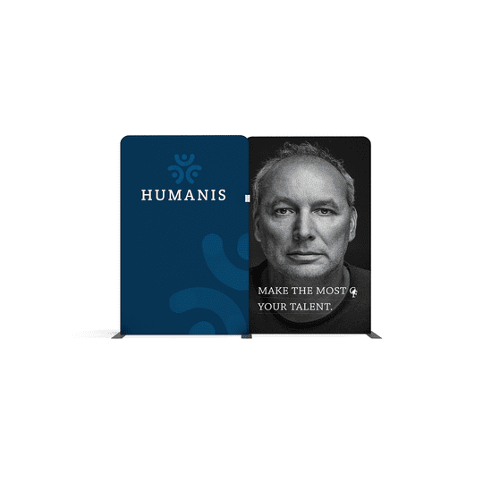 Made from 2 x 1.45mW Fabric Panels connected together, this 2.9mW x 2.26mH kit is built using simple and lightweight aluminum frames with pillow case-style, wrinkle-resistant polyester fabric graphic panels which zip over the frames.