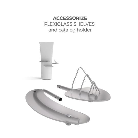 The Brandcusi Banner Stand is a 3D display that can be viewed from all sides and comes with 2 Plexiglass Shelves and 1 Brochure Holder, all built-in to the stand structure.