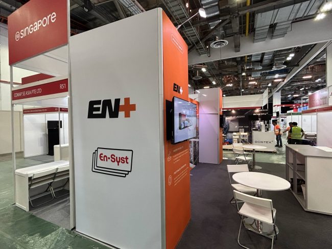 The 4m wide backwall provides a significant opportunity for impactful branding and engaging visuals, while the inclusion of 3-meter-high towers with TV screens mounted on either side of the backwall presents additional opportunities to enhance the booth’s branding and engagement.